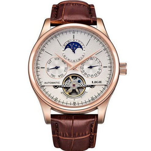 LIGE Automatic Mechanical Watch Men Leather Waterproof