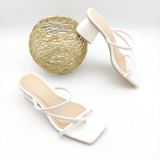 Miley - Gretchen 775 - 2-Inch Padded Thong Strap Odd Shape Toe Trapezoidal Heels