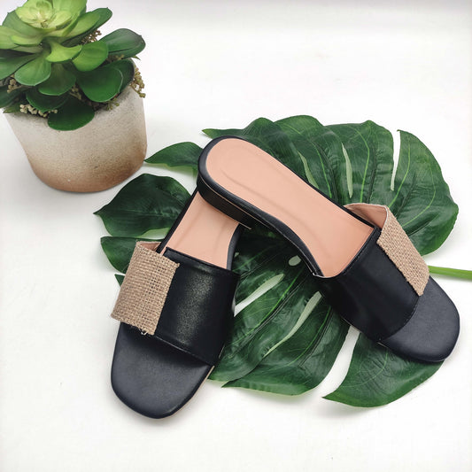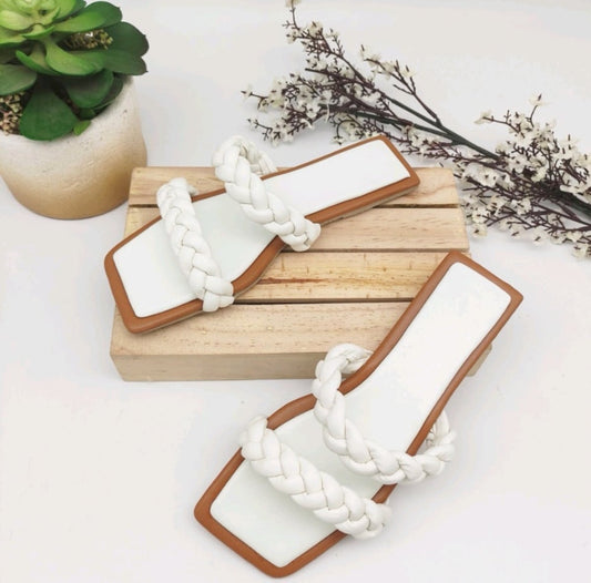 Micole - Tracey 686 - Flat Square Toe Dual Braided & Dual Tone Cushion Slides